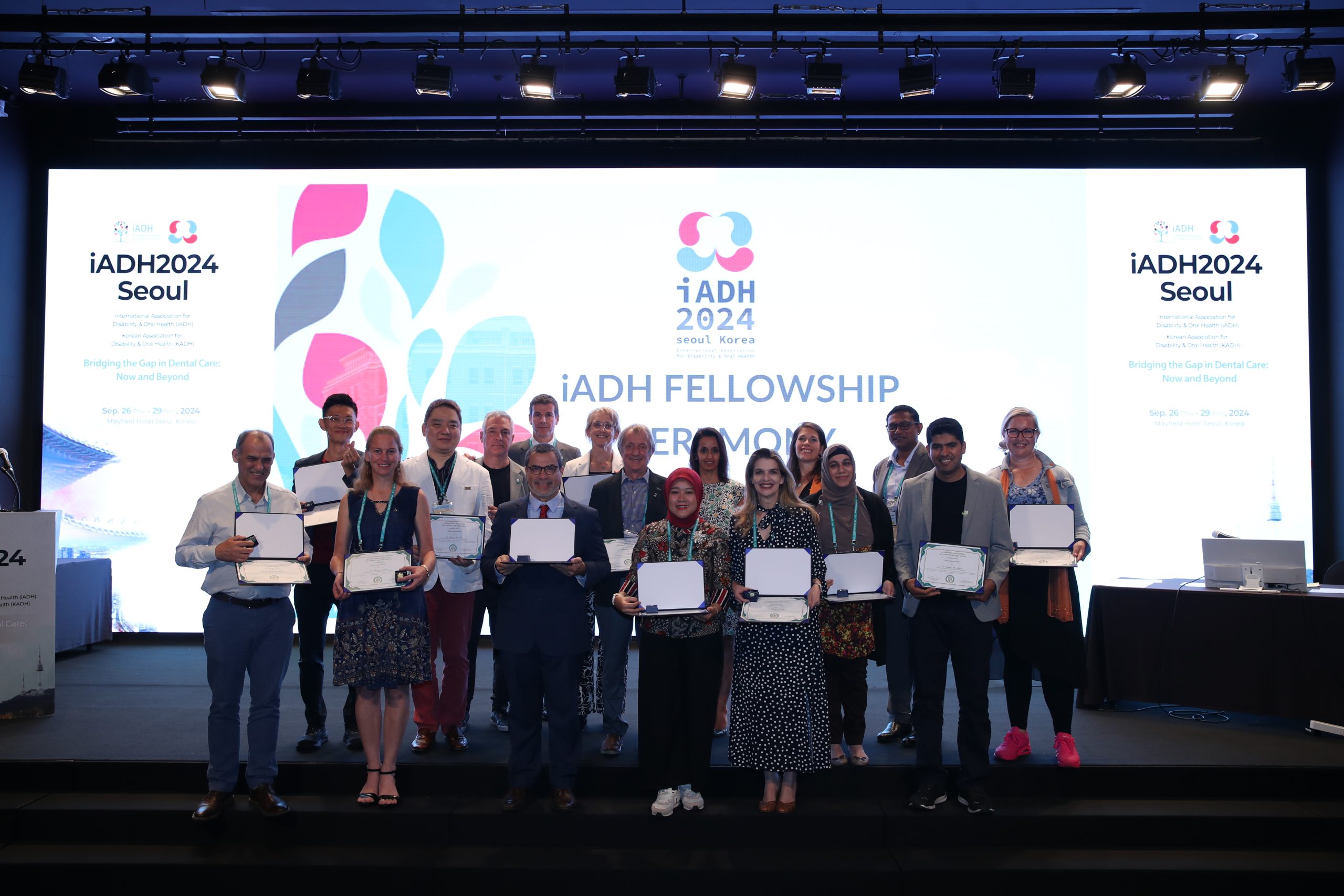 The second iADH Fellowship Award Ceremony took place on the 29 of September 2024 during the 27th iADH conference in Seoul. On this occasion, 21 out of 40 applicants were recognized. Most of them were able to attend Seoul and pick up their certificate in person.